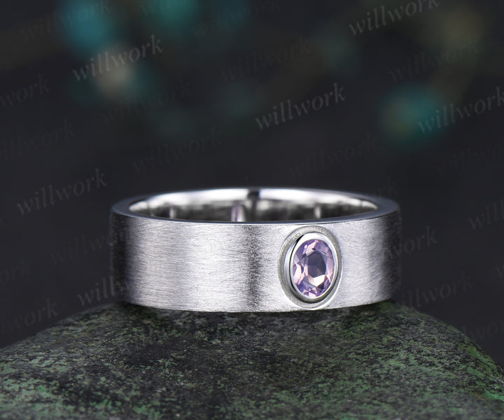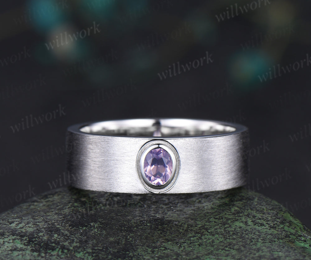 Brushed finish oval lavender amethyst men wedding band elegant solitaire ring solid 10k/14k/18k white gold engagement ring anniversary gift Brushed finish oval lavender amethyst men wedding band elegant solitaire ring solid 10k/14k/18k white gold engagement ring anniversary gift $501.00