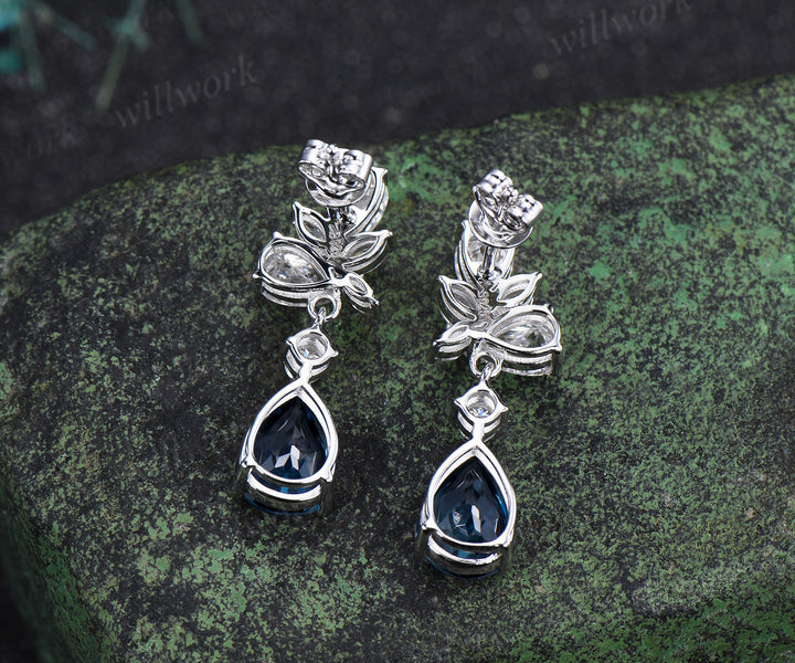 Pear cut London blue topaz earrings solid 14k white gold cluster moissanite opal drop earrings women anniversary gift for her Pear cut London blue topaz earrings solid 14k white gold cluster moissanite opal drop earrings women anniversary gift for her $452.00