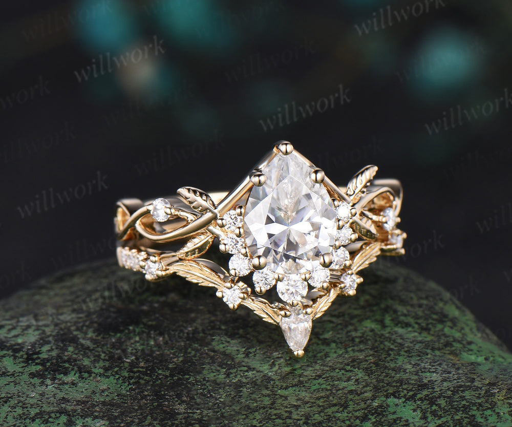 Pear cut moissanite engagement ring vintage infinity diamond leaf ring set stacking unique wedding promise ring women gift