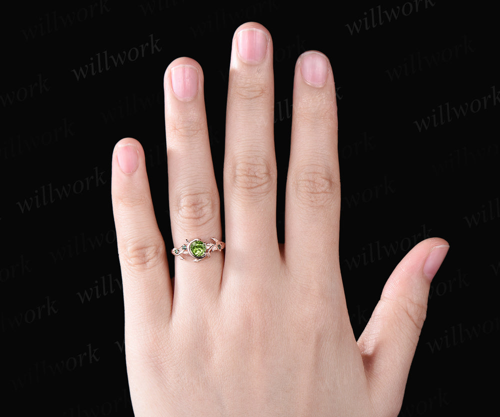 Vintage August Birthstone Round Cut Natural Peridot Engagement Ring 14k Rose Gold Emerald Moon Star Leaf Nature Inspired Bridal Ring Promise Gift Vintage August Birthstone Round Cut Natural Peridot Engagement Ring 14k Rose Gold Emerald Moon Star Leaf Nature Inspired Bridal Ring Promise Gift $1,066.00