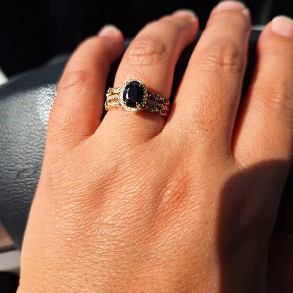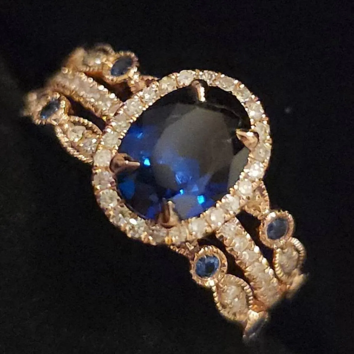 3pcs blue sapphire ring vintage sapphire engagement ring set rose gold for women diamond halo natural sapphire wedding band bridal ring set