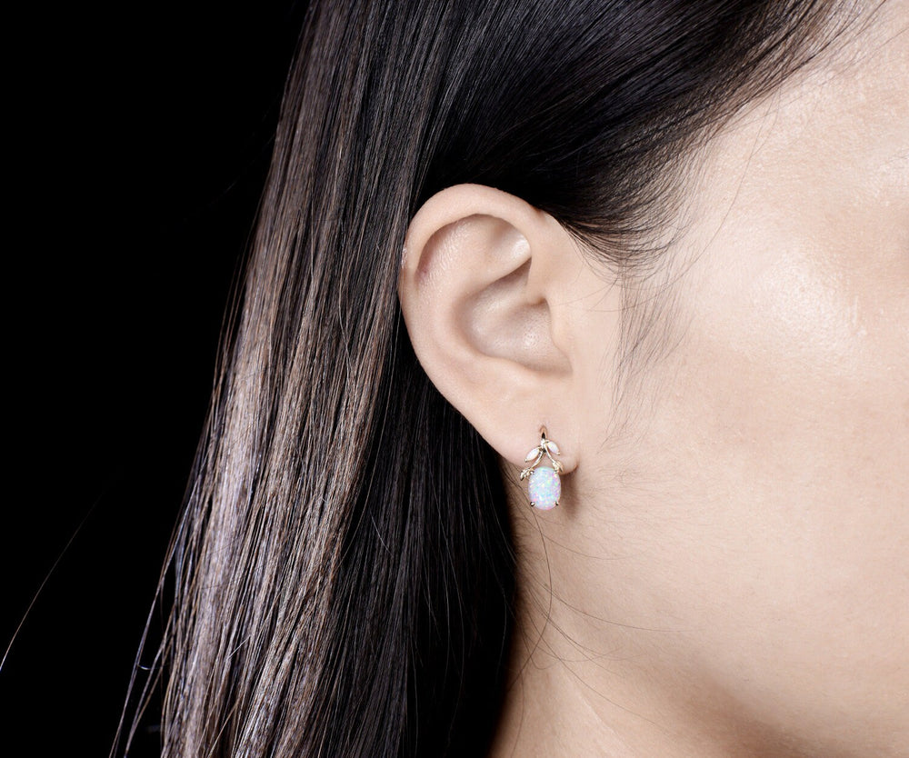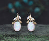 Oval cut white opal earrings solid 14k yellow gold vintage leaf marquise opal drop earrings women anniversary gift jewelry