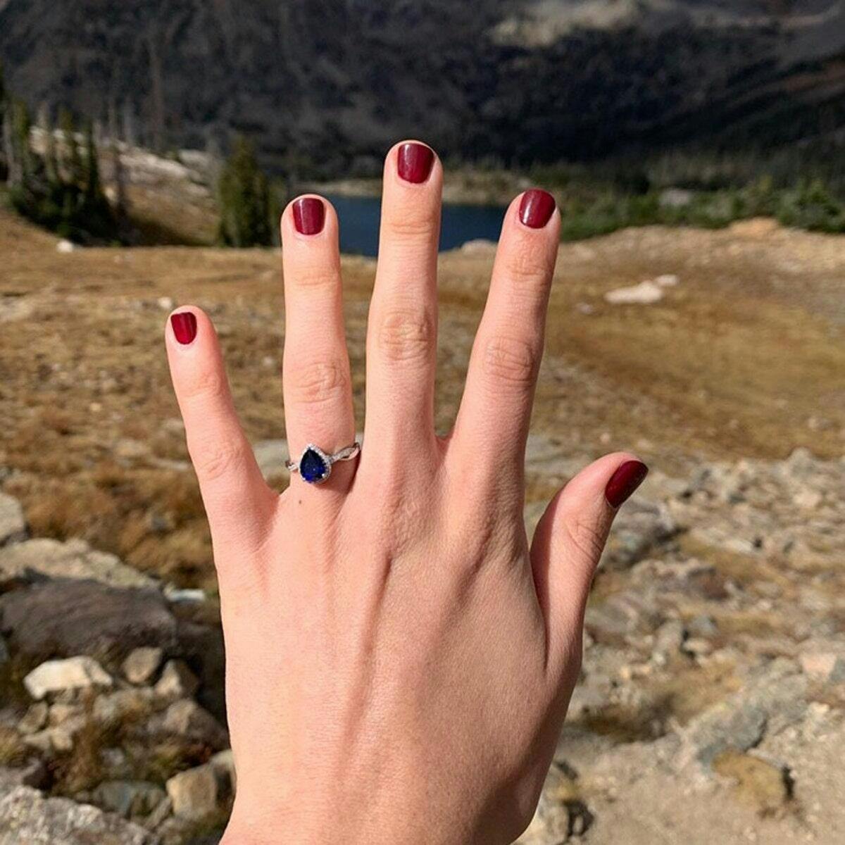 - Main Stone: 6x8mm pear cut lab treated emerald