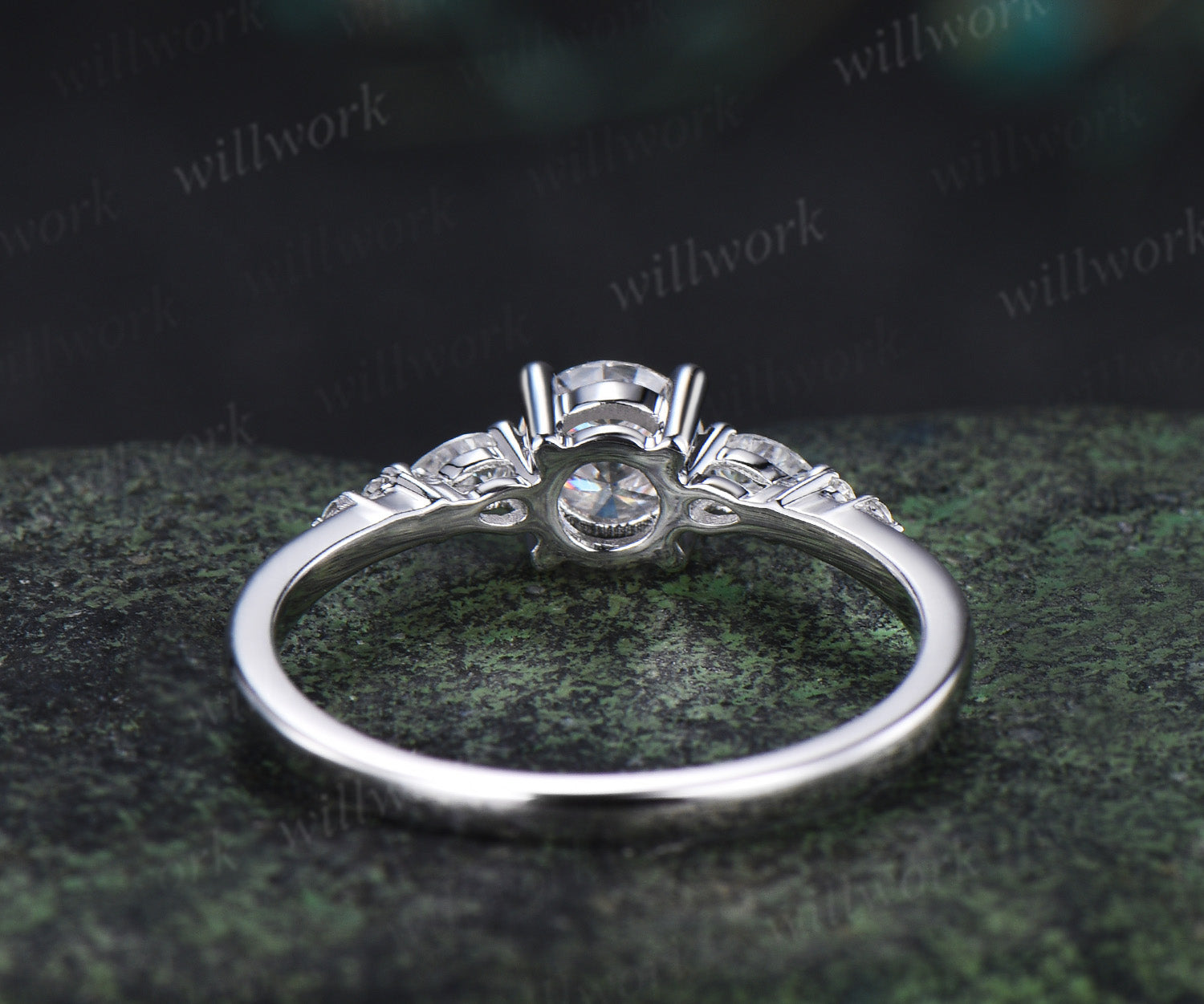 Round moissanite ring vintage moissanite engagement ring 14k white gold dainty minimalist pear diamond ring promise wedding ring women gifts