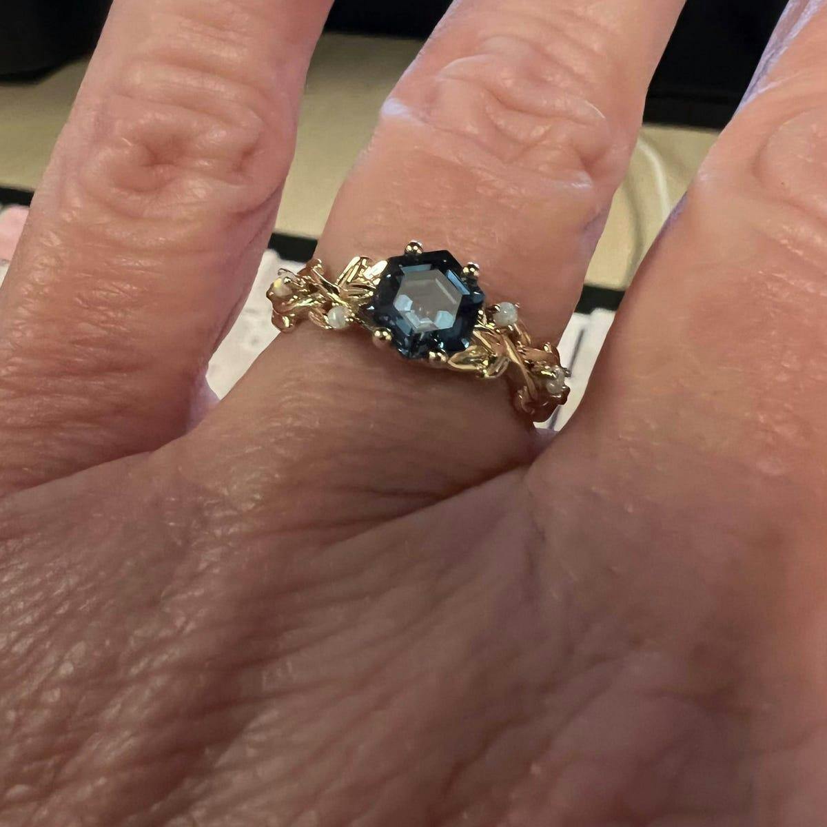 - Main Stone: 6x6mm hexagon cut lab Alexandrite