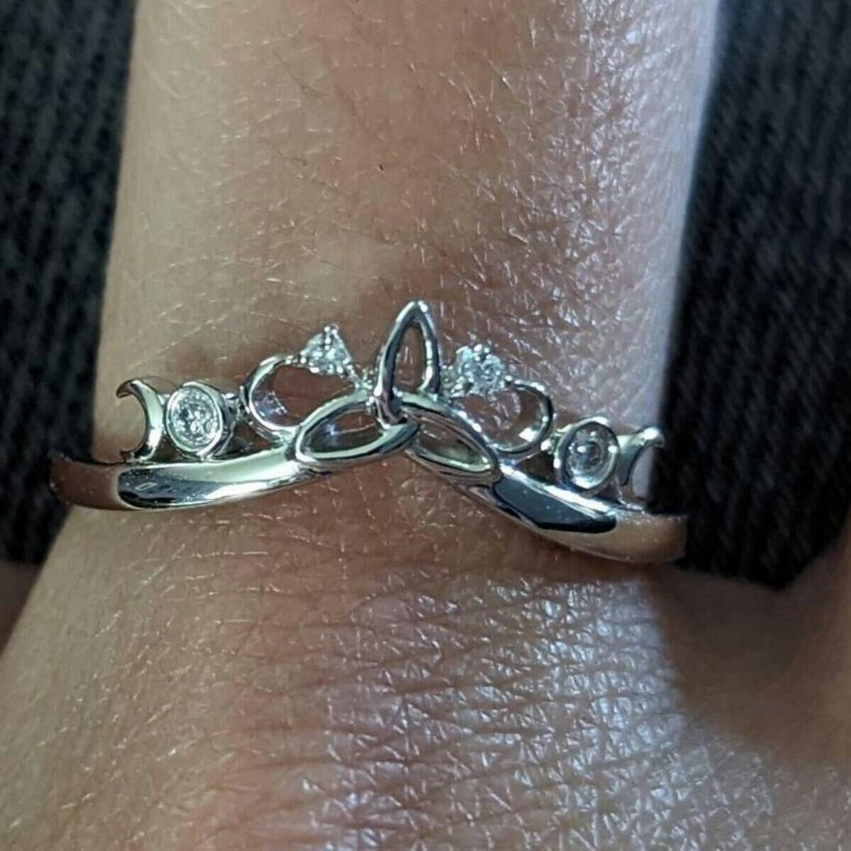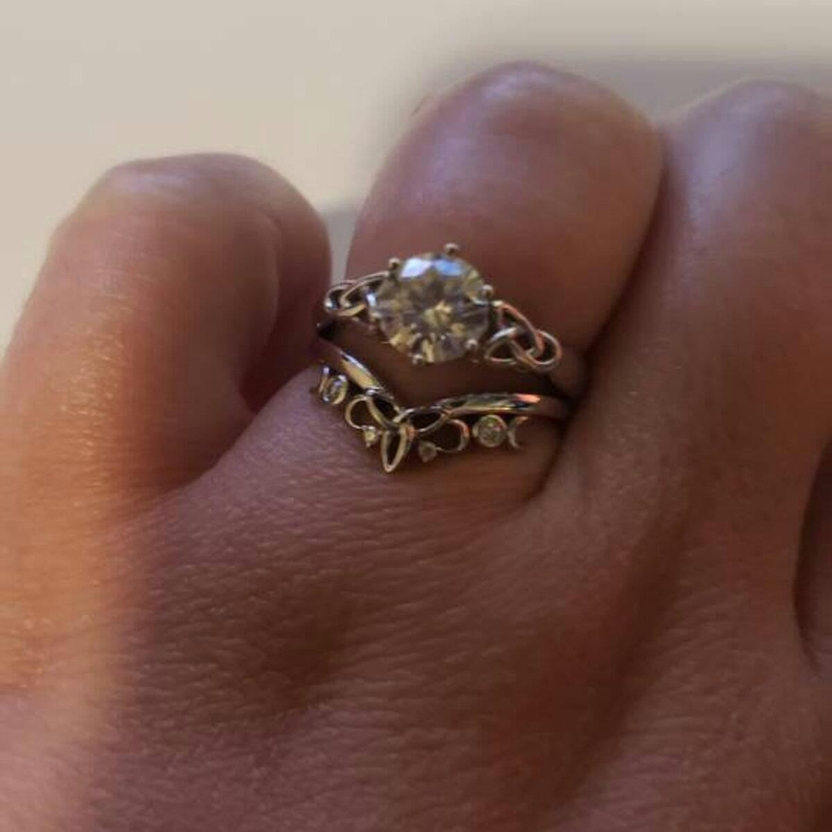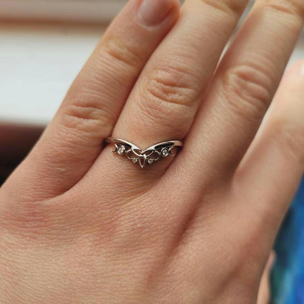 Unique diamond wedding ring moon ring norse viking ring vintage diamond wedding band 14k white gold ring anniversary bridal ring for women