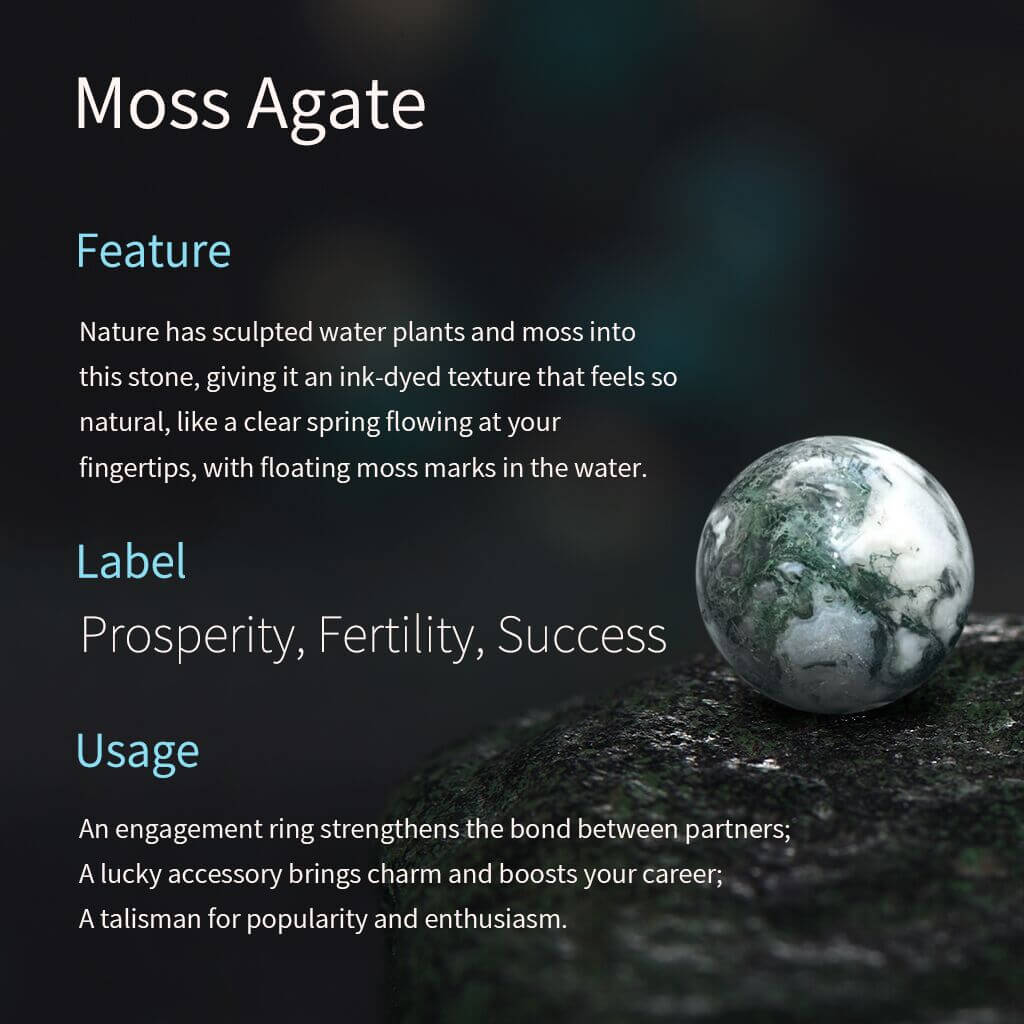 - Wedding Band Stone: marquise cut natural moss agates and round cut moissanites