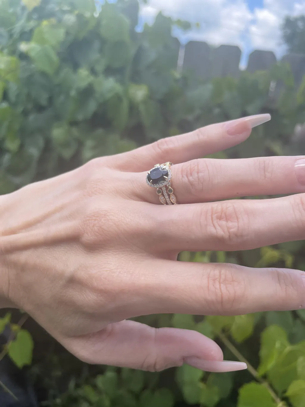 Vintage teal green sapphire engagement ring halo unique rose gold engagement ring diamond emerald ring for women bridal wedding ring set
